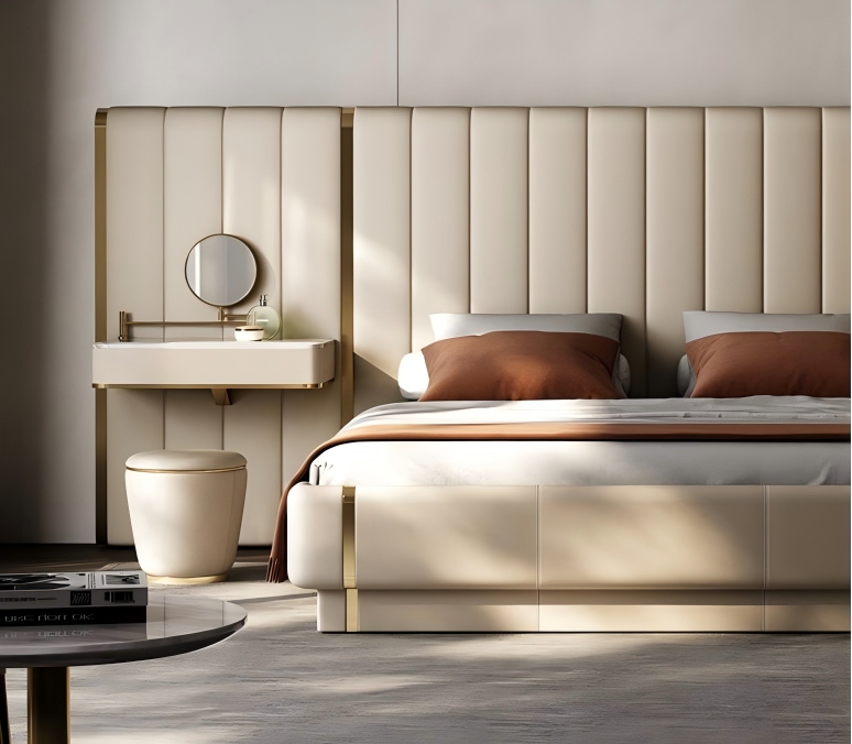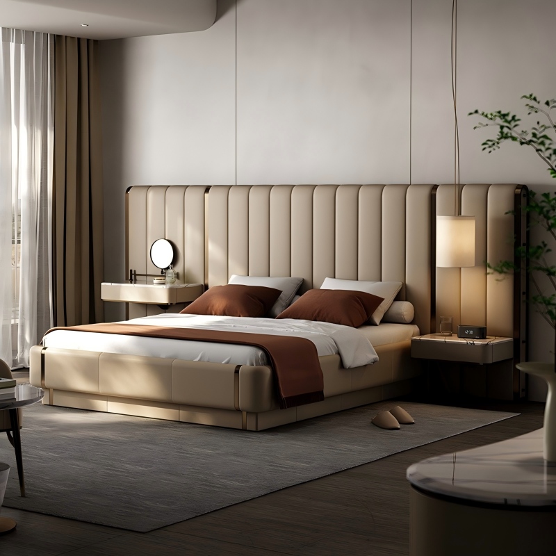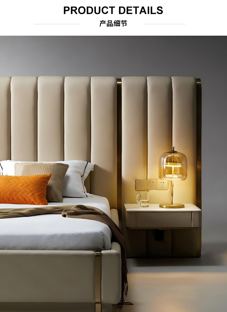 High-end na pagpapasadya "light luxury buckle bed + parehong kulay bedside table | laki/color customization suportado