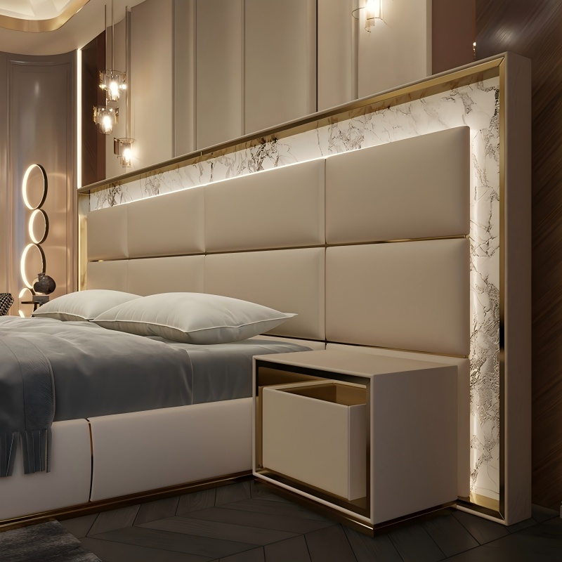 Napiling Italian Carrara White Natural Marble, na may na-import na Velvet Soft-Padded Headboard, Pinagsasama ang Rigidity at Lambot upang I-interpret ang Light Luxury Aesthetics "Marble Bedside na may built-in na wireless charging, isang symbiosis ng teknolohiya at luho" " • "" Adjustable Light Strip + Marble Tabletop, isang perpektong kasama para sa pagbabasa bago matulog "" ] 【Kulay】 Opsyonal (Maaaring mayroong isang maliit na paglihis sa kulay, mangyaring sumangguni sa totoong bagay.) 【Materyal】 katad+PVC/ micrifiber leather+PVC/ tela 【Laki】 King/ Queen/ Customed Made 【Packing】 Tatlong layer standard na pag -export ng pag -export 【Dami ng packaging】 About 1.2m³ 【Kulay】 Opsyonal (Maaaring mayroong isang maliit na paglihis sa kulay, mangyaring sumangguni sa totoong bagay.) 【Materyal】 katad+PVC/ micrifiber leather+PVC/ tela 【Laki】 King/ Queen/ Customed Made 【Packing】 Tatlong layer standard na pag -export ng pag -export "