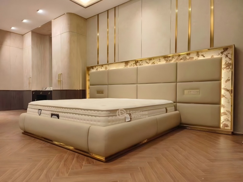 Marmol na kama na may built-in na wireless charging, isang simbolo ng teknolohiya at luho "